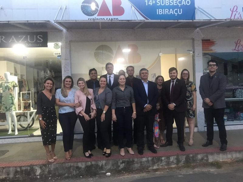 Posse Diretoria 2019/2021A diretoria da Subseção de Ibiraçu foi empossada, no dia 16/01/19, durante cerimônia que ocorreu na sala de apoio dos advogados de Fundão. O presidente da OAB-ES, José Carlos Rizk Filho, fez questão de estar presente para cumprimentar os novos dirigentes da comarca. O presidente da Subseção, Leolino de Oliveira Costa Neto, enfatizou que possui uma ótima expectativa, pois pretende atuar em prol da advocacia do interior em parceria com a Seccional. “Quero buscar o melhor para os advogados e advogadas da nossa região, resolvendo os problemas que são muitos, mas sempre em conjunto com a diretoria da OAB-ES. Entre as inúmeras situações que precisam de atenção está a criação de salas de apoio nas comarcas de Santa Maria de Jetibá e João Neiva, inclusive a pedido dos próprios advogados”, afirmou Leolino. Durante a posse também estavam presentes as conselheiras seccionais, Manoela Soares, Talita Pereira e Aline Rudio, o presidente da Subseção de Aracruz, Felipe Selvatice e a presidente da Comissão da Jovem Advocacia - OAB Jovem, Bárbara Guedes Néspoli.