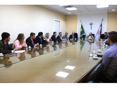 Em reunião com o presidente do Tribunal de Justiça do Espírito Santo (TJ-ES), desembargador Sérgio Luiz Teixeira Gama, o presidente da Ordem dos Advogados do Brasil - Seção Espírito Santo (OAB-ES), Homero Mafra, apresentou os pleitos da advocacia quanto a melhorias que precisam ser implementadas em fóruns do interior do Estado. Da reunião também participaram o corregedor-geral de Justiça, desembargador Samuel Meira Brasil Júnior, os juízes assessores especiais da presidência do TJ, Fábio Brasil Nery e Paulo César de Carvalho, e outros 14 advogados, inclusive os presidentes das Subseções da Ordem de Colatina e de Ibiraçu/Fundão.